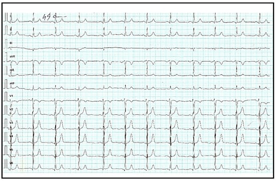The electrocardiogram (ECG) showed sinus rhythm, heart rate 75 bpm, intermediate QRS axis, normal morphology (Figure 1).