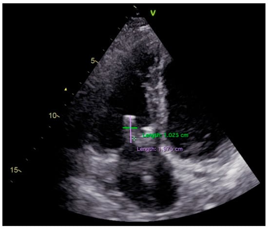 We present the case of a 48-year-old male who was admitted to a local county hospital for fever, chills, and extreme fatigability; a routine blood test revealed inflammatory syndrome and severe anemia and after 24 h, the blood cultures became positive for methicillin-susceptible Staphylococcus aureus. The recent history of the patient described a similar episode, two weeks previously, with fever, headache, and accentuated fatigability alleviated under empirical antibiotic therapy with amoxicillin/clavulanic acid 2 g/day for 5 days. Two months previously, the patient presented two consecutive episodes of urinary obstruction within 10 days; each time he underwent urinary catheterization without antibiotic prophylaxis for infective endocarditis, since, according to guidelines, he was framed as a negligible-risk patient, and the patient’s history included a single chamber pacemaker implant for intermittent complete atrioventricular (AV) block, 12 years previously (2008). Considering the patient’s history and the positive blood cultures, a transthoracic echocardiography was performed, which revealed a 21/10 mm pedunculated hypoechogenic mobile mass attached to the tricuspid valve. After establishing the diagnosis of right-sided bacterial endocarditis, the antibiotic treatment was adapted, with initiation of oxacillin 12 g/day, rifampicin 900 mg/day, and gentamicin 3 mg/kg/24 h. The patient was then redirected from the local county hospital to our center for further investigations and treatment.