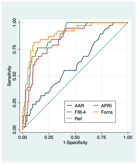 - Li, J.; Gordon, S.C.; Rupp, L.B.; Zhang, T.; Boscarino, J.A.; Vijayadeva, V.; Schmidt, M.A.; Lu, M.; Chronic Hepatitis Cohort Study (CHeCS) Investigators. The validity of serum markers for fibrosis staging in chronic hepatitis B and C. J. Viral Hepat. 2014, 21, 930–937. [Google Scholar] [CrossRef] [PubMed]