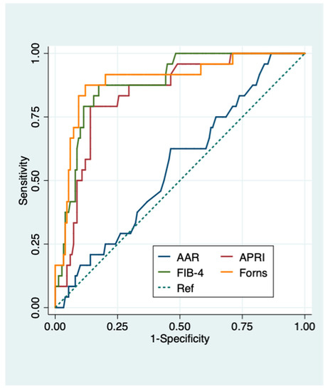 2.2. Diagnostic Performance of Liver Fibrosis Biomarkers