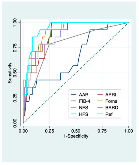 - Vallet-Pichard, A.; Mallet, V.; Nalpas, B.; Verkarre, V.; Nalpas, A.; Dhalluin-Venier, V.; Fontaine, H.; Pol, S. FIB-4: An inexpensive and accurate marker of fibrosis in HCV infection: Comparison with liver biopsy and fibrotest. Hepatology 2007, 46, 32–36. [Google Scholar] [CrossRef] [PubMed]