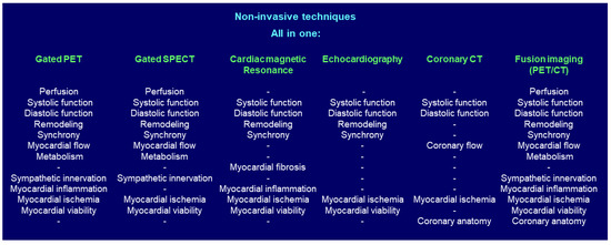 On the other hand, during the follow-up of patients with csCAD, special attention should be paid to eight groups of patients with high morbidity and mortality, with more hospital readmissions and difficult therapeutic management (Table 2). Therefore, the use of non-invasive imaging techniques during follow-up is a useful tool, especially in the case of those that provide multiple data in the same study (gated PET, gated SPECT), as each parameter can provide additional prognostic information (Figure 4).