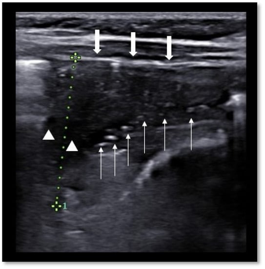 - Hopkins, A.; Doniger, S.J. Point-of-Care Ultrasound for the Pediatric Hospitalist’s Practice. Hosp. Pediatr. 2019, 9, 707–718. [Google Scholar] [CrossRef]