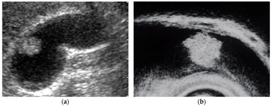 - Akatsu, T.; Aiura, K.; Shimazu, M.; Ueda, M.; Wakabayashi, G.; Tanabe, M.; Kawachi, S.; Kitajima, M. Can endoscopic ultrasonography differentiate nonneoplastic from neoplastic gallbladder polyps? Dig. Dis. Sci. 2006, 51, 416–421. [Google Scholar] [CrossRef]