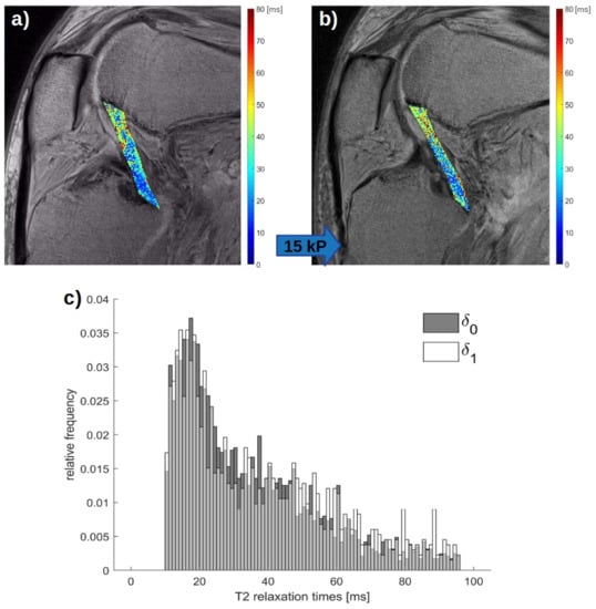 - Nebelung, S.; Sondern, B.; Oehrl, S.; Tingart, M.; Rath, B.; Pufe, T.; Raith, S.; Fischer, H.; Kuhl, C.; Jahr, H.; et al. Functional MR Imaging Mapping of Human Articular Cartilage Response to Loading. Radiology 2017, 282, 464–474. [Google Scholar] [CrossRef] [PubMed] [Green Version]