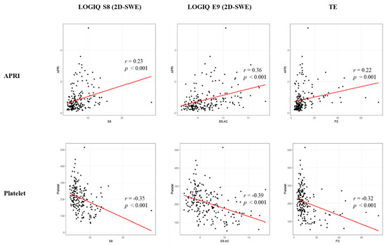 3.5. Correlation among Values Obtained by APRI Index and Platelet Count and LS by S8, E9 and TE