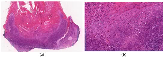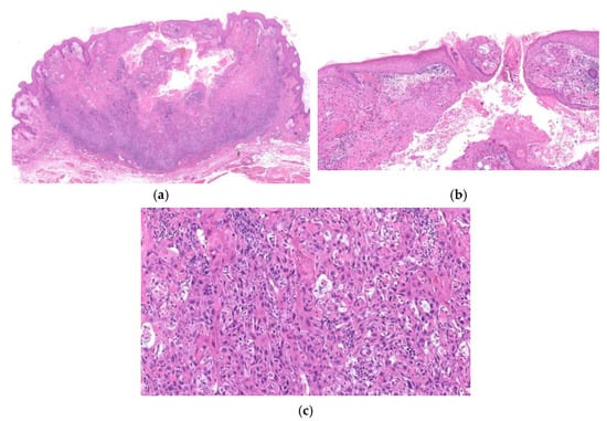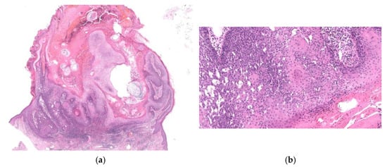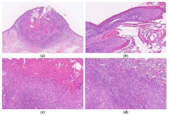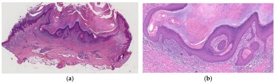 - Misago, N.; Takai, T.; Toda, S.; Narisawa, Y. The histopathologic changes in keratoacanthoma depend on its stage. J. Cutan. Pathol. 2014, 41, 617–619. [Google Scholar] [CrossRef] [PubMed]