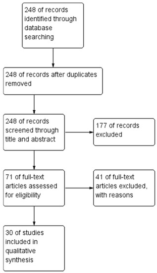 This search recognized 248 studies, 71 were fully appraised, and 30 included in this review (Figure 1). The included studies are summarized in Additional File S2 and were mostly observational and non-comparative (nine were observational retrospective, six were observational prospective, five were reviews, four were prospective cross-sectional, two were retrospective cross-sectional, one was a prospective randomized control trial, one was a secondary analysis of previously published prospective trials, one was a retrospective analysis of prospective observational case series, and one was a case-report). Regarding the 41 excluded articles, they were excluded based on being outside the selected date interval—5, the absence of NVC or NPA results—24, not using OCT/OCTA—5, and lacking PDR data—7.