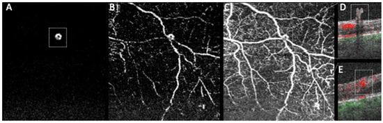 Nevertheless, it should be noted that for a proper assessment, correct segmentation is necessary, and often there is improvement in NVC recognition with manual segmentation [79,81,86,93,103,104]. In the future, the accuracy of NVC detection in vitreoretinal slabs might increase with improvement of auto segmentation, deep learning and artificial intelligence [81,86,107,108,109,110,111]. IRMAs seem to generate higher false positive rates due to the retinal slab image, despite the vitreoretinal slab image not showing extension into the vitreous cavity [82]. Additionally, after some debate, recent studies demonstrate that IRMAs are definite precursors of NVE [83].