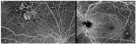 Schwartz et al. [41] also successfully detected NVE and determined NVE activity in the posterior pole by combining OCT and OCTA. This strategy had an additional advantage in the presence of retinal and preretinal hemorrhages, despite their masking effect. Similarly, Belenje et al. [76] reported a particular case in which OCTA successfully detected NVCs and adjoining NPAs “hidden” under retinal hemorrhages on funduscopy.