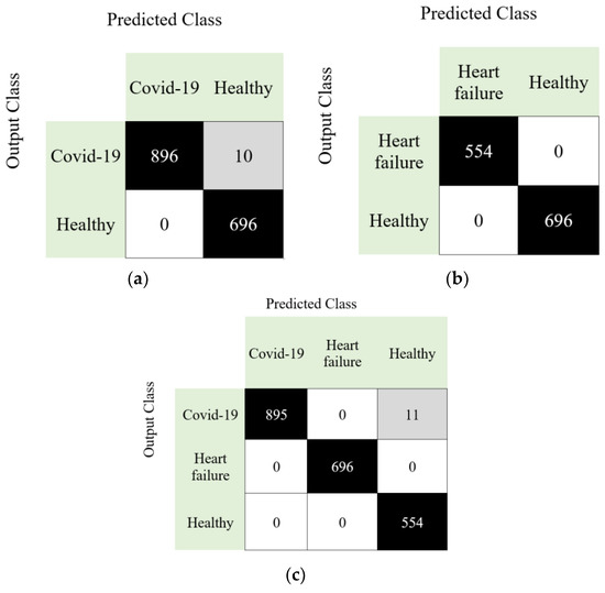 - Three distinct clinically relevant classification problems were defined: Case 1, COVID-19 vs. healthy; Case 2, HF vs. healthy; and Case 3, COVID-19 vs. HF vs. healthy.