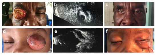 - Stahnke, T.; Erbersdobler, A.; Knappe, S.; Guthoff, R.F.; Kilangalanga, N.J. Management of Congenital Clinical Anophthalmos with Orbital Cyst: A Kinshasa Case Report. Case Rep. Ophthalmol. Med. 2018, 2018, 1–6. [Google Scholar] [CrossRef]