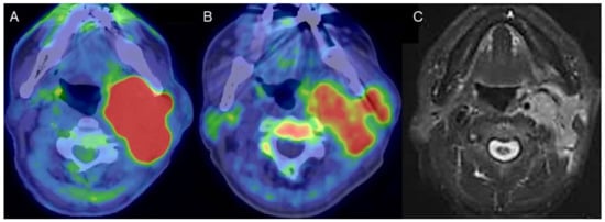 - Ito, K.; Yokoyama, J.; Miyata, Y.; Toyohara, J.; Okasaki, M.; Minamimoto, R.; Morooka, M.; Ishiwata, K.; Kubota, K. Volumetric comparison of positron emission tomography/computed tomography using 4′-[methyl-¹¹C]-thiothymidine with 2-deoxy 2-¹⁸F-fluoro-D-glucose in patients with advanced head and neck squamous cell carcinoma. Nucl. Med. Commun. 2015, 36, 219–225. [Google Scholar] [CrossRef] [PubMed]