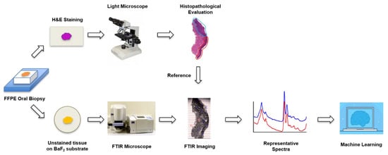 - Wang, R.; Wang, Y. Fourier Transform Infrared Spectroscopy in Oral Cancer Diagnosis. Int. J. Mol. Sci. 2021, 22, 1206. [Google Scholar] [CrossRef]