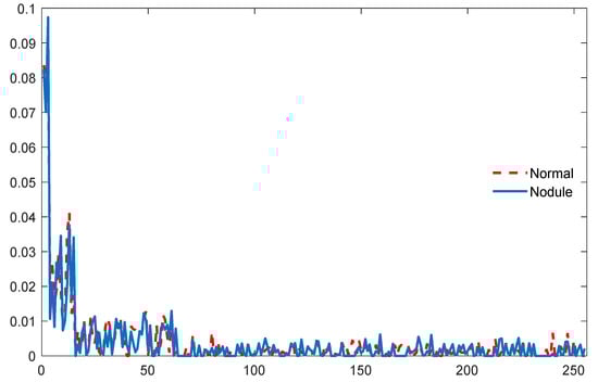 PHOG features obtained with the sample test images of Normal/Nodule class.
