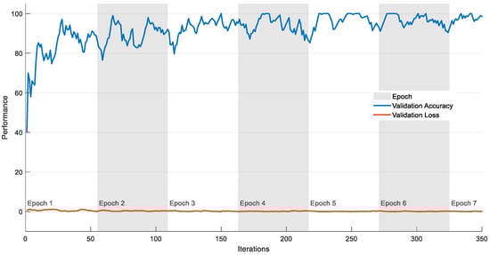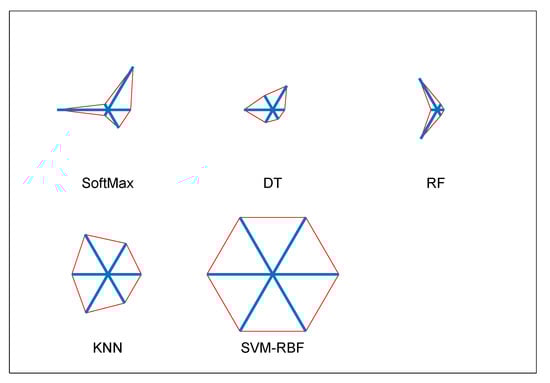 The performance of the DL-based automated disease detection arrangement depends chiefly on the performance of the classifier implemented to categorize the considered test images based on the need. In this paper, a binary classification is initially implemented using the SoftMax classifier and, later, the well-known classifiers, such as Decision Trees (DT), RF, KNN and Support Vector Machine-Radial Basis Function (SVM-RBF) [,,,,], are also considered to improve the classification task. In this paper, a 10-fold cross-validation process is implemented, and the finest result attained is then considered as the final classification result. The performance of the classifier is then authenticated and confirmed based on the Image Performance Values (IPV) [,,].