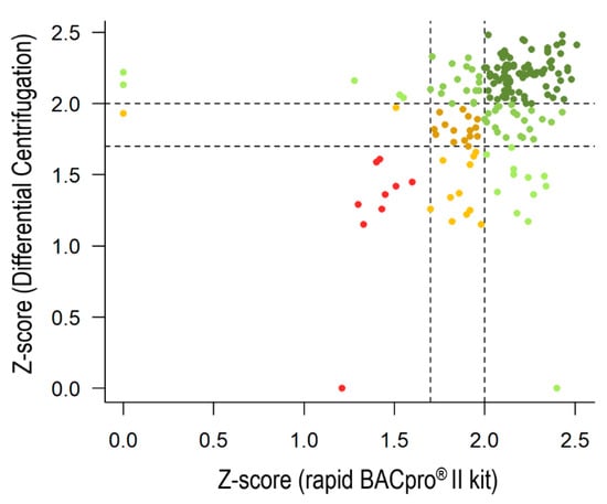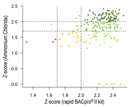 3.3. Comparison between the Rapid BACpro® II Kit and in-House Methods