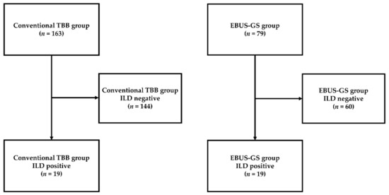 Patient selection and classification flowchart. TBB, transbronchial biopsy; ILD, interstitial lung disease; EBUS-GS, endobronchial ultrasonography with a guide sheath.