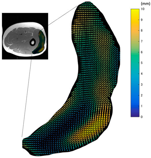 13]. In the quadriceps muscles, the complex radial architecture of fascicles made it difficult to obtain the change in displacement in muscle tissues from the sagittal plane of the MR images compared with the gastrocnemius muscles [