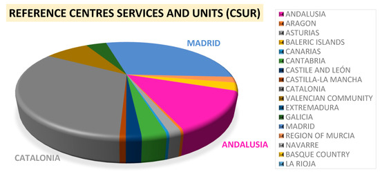 CSUR distribution. Most of these Reference Centres, Services and Units (CSUR) are in the regions of Catalonia, Madrid, and Andalusia. Source: Listado CSUR, 2021.