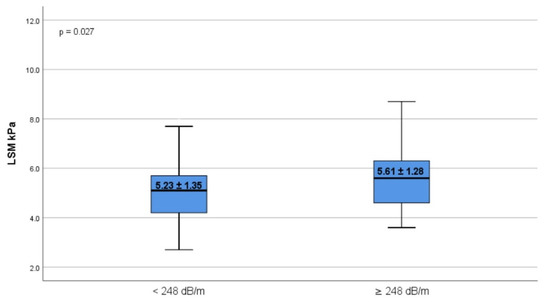 | LSM kPa | 5.23 ± 1.35 | 5.61 ± 1.28 | 0.027 |