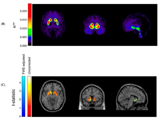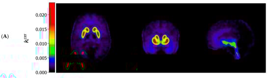 - Egerton, A.; Demjaha, A.; McGuire, P.; Mehta, M.A.; Howes, O.D. The test–retest reliability of 18F-DOPA PET in assessing striatal and extrastriatal presynaptic dopaminergic function. Neuroimage 2010, 50, 524–531. [Google Scholar] [CrossRef]