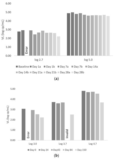 - Hardie, D.; Korsman, S.; Ameer, S.; Vojnov, L.; Hsiao, N.Y. Reliability of plasma HIV viral load testing beyond 24 hours: Insights gained from a study in a routine diagnostic laboratory. PLoS ONE 2019, 14, e0219381. [Google Scholar] [CrossRef]