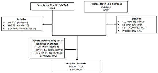 PRISMA diagram showing articles identified for inclusion in the review. COVID-19, coronavirus disease 2019; PRISMA, Preferred Reporting Items for Systematic Reviews and Meta-Analyses; TEG, thromboelastography.