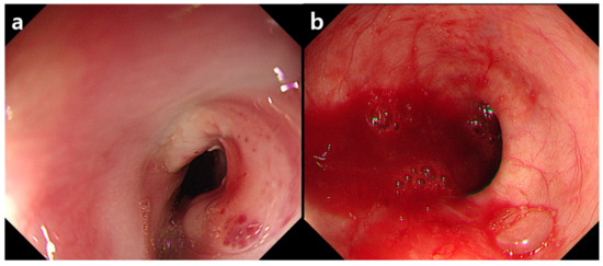 - Lehmann, B.; Clemetson, I.; Fantin, A.C.; Henning, P.; Kipfer, B.; Mühlethaler, R.; Vetsch, G.; Dinkel, H.-P. Arterioesophageal fistula secondary to rupture of an aberrant right subclavian artery aneurysm: A rare differential diagnosis in upper gastrointestinal bleeding. Endoscopy 2006, 38, 762. [Google Scholar] [CrossRef]