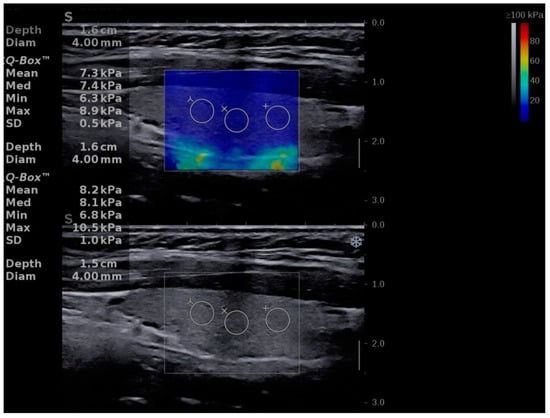 Shear-wave elastography of a girl, 16 years old—from the chronic autoimmune thyroiditis (CAT) group.