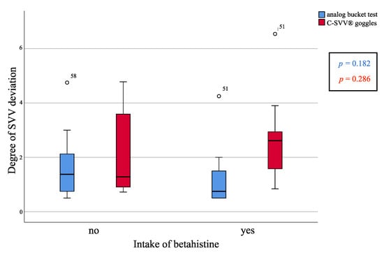 Influence of Intake of Betahistine (C-SVV® Goggles), Degrees | ||