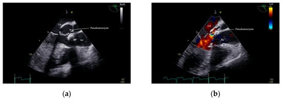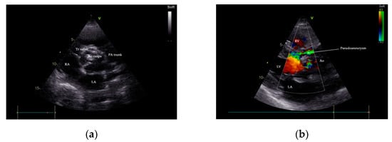 - Takamiya, Y.; Miura, S.; Sako, H.; Shirai, K.; Morishige, N.; Tashiro, T.; Saku, K. Pseudoaneurysm of the mitral-aortic intervalvular fibrosa following infective endocarditis in a patient with acute heart failure: A case report. J. Cardiol. 2007, 49, 353–356. Available online: http://www.jcc.gr.jp/journal/backnumber/bk_jcold/pdf/496-8(H).pdf (accessed on 16 November 2020).