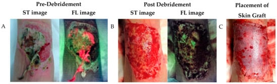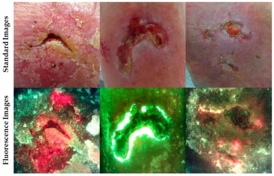 - Cole, W.; Coe, S. Use of a bacterial fluorescence imaging system to target wound debridement and accelerate healing: A pilot study. J. Wound Care 2020, 29, S44–S52. [Google Scholar] [CrossRef]