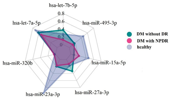 | miRNA | Healthy (1) | DM without DR (2) | DM with NPRD (3) | p-Value |
