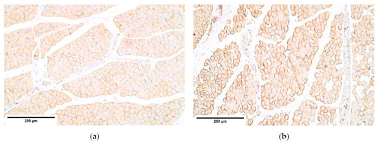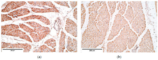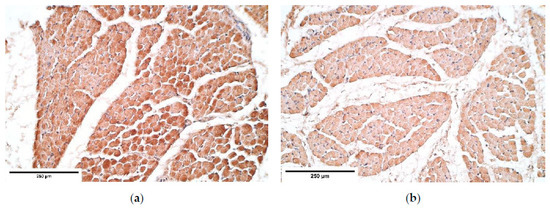 β-defensin 4 showed an absence of positive muscle fibers in the proximal and distal parts of the diaphragm and its expression fluctuated from absent to few positive structures in the central part. β-defensin 4 is an anti-microbial agent and its expression increases in response to inflammatory signals. It has been reported that the gene of the human β-defensin 4, called hBD-4, is limited to only a few tissues and the diaphragm is not one of them [