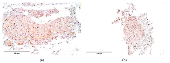 The data processing was conducted using Statistical Package for the Social Sciences (SPSS) program version 20.0. The results from semi-quantitative evaluated tissue and structures were transformed into numerical form as follows: 0: equals to 0, 0/+: equals to 0.5, +: equals to 1, +/++: equals to 1.5, ++: equals to 2, ++/+++: equals to 2.5, +++: equals to 3, +++/++++: equals to 3.5, ++++: equals to 4. The test of normal distribution showed that data was not distributed normally, thus nonparametric statistics was used. Nonparametric Mann–Whitney U test was used to determine statistically significant differences between the patient and the control groups and Spearman’s rank correlation coefficient was calculated to detect correlations between the factors in the patient group, where r = 0–0.19 was assumed as a very weak correlation, r =0.2–0.39—weak correlation, r = 0.4–0.59—moderate correlation, r = 0.6–0.8—strong correlation and r = 0.8–1.0—a very strong correlation. For all the tests p-value was chosen 5% (p-value < 0.05) as statistically significant.