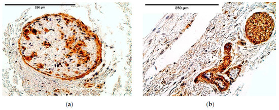 A semi-quantitative counting method was used for the evaluation of the tissues and structures in the stained slides. Tissue and morphological structures were graded by the appearance of positively stained cells in the visual field. The used designations were as follows: 0—no positive structures, 0/+: occasional positive structures, +: few positive structures, +/++: few to moderate number of positive structures, ++: moderate number of positive structures, ++/+++: moderate to numerous positive structures, +++: numerous positive structures, +++/++++: numerous to abundant structures, ++++: abundance of positive structures in the visual field [