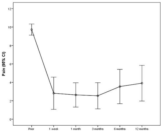 | Mean change from prior to 12 months (SD) | −5.8 (2.8) | <0.001 |