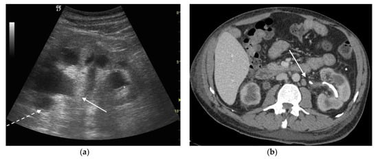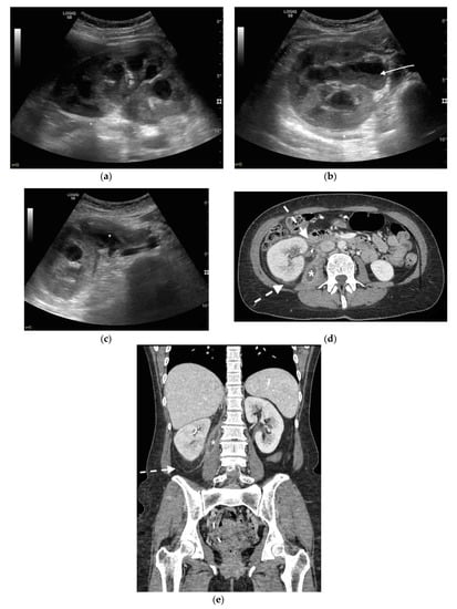 - Kamboj, M.; Loy, J.L.; Koratala, A. Renal ultrasonography: A reliable diagnostic tool for pyonephrosis. Clin. Case Rep. 2018, 6, 1176–1178. [Google Scholar] [CrossRef]