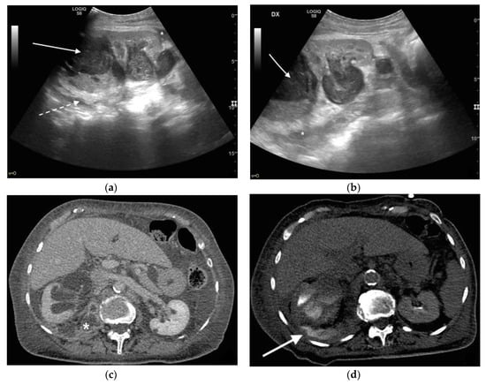 - Stojadinovic, M.; Micic, S.; Milovanovic, D. Ultrasonographic and computed tomography findings in renal suppurations: Performance indicators and risks for diagnostic failure. Urol. Int. 2008, 80, 389–397. [Google Scholar] [CrossRef] [PubMed]