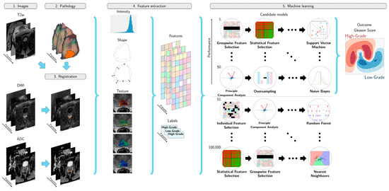 - Castillo, T.J.M.; Starmans, M.P.A.; Niessen, W.J.; Schoots, I.; Klein, S.; Veenland, J.F. Classification Of Prostate Cancer: High Grade Versus Low Grade Using A Radiomics Approach. In Proceedings of the 2019 IEEE(New York, USA) 16th International Symposium on Biomedical Imaging (ISBI 2019), Venice, Italy, 8–11 April 2019; pp. 1319–1322. [Google Scholar]