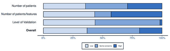 - Risk of overfitting, where studies with fewer than three patients per evaluated features were considered to have a high risk of bias; between three and five, some concerns; and more than five patients per features, low risk of bias. This rationale was adapted from the recommendations provided by Papanikolaou et al. [66].
