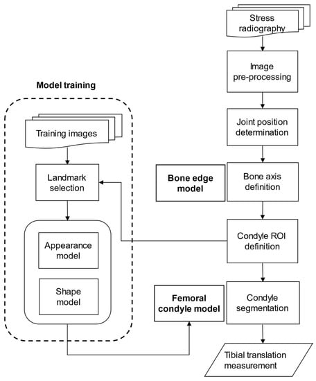 Several automatic methods for objective measurement of joint space or angle using computer-assisted systems have recently been developed [12,13,14]. Automatic computer image assessment and analysis system can segment the femur, tibia, and patella using an edge-based method. Then, some landmarks to calculate tibial translation distance can be defined using a segmentation algorithm.