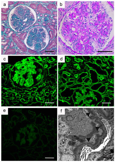- Lin, J.; Markowitz, G.S.; Valeri, A.M.; Kambham, N.; Sherman, W.H.; Appel, G.B.; D’Agati, V.D. Renal Monoclonal Immunoglobulin Deposition Disease: The Disease Spectrum. J. Am. Soc. Nephrol. 2001, 12, 1482–1492. [Google Scholar]