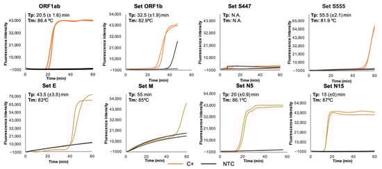 3.1. RT-LAMP Primer Sets Screening and Selection