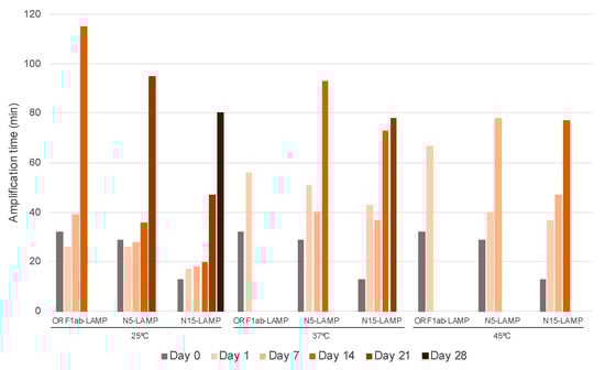 3.4. Stability and Functionality Over Time of Dry-RT-LAMP Mixes