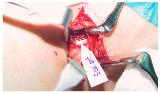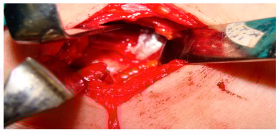 All patients were preoperatively examined and diagnosed as well as operated on by a surgeon specialized both in orthopedic and hand surgery and with long experience in TOS surgery (some 500 TOS surgeries). Scalenotomy was performed in the manner of Sanders et al. [17]. After dissection of the anterior scalene muscle, all connective tissue fibers, stray muscle fibers, and any another bands and ligaments were excised to completely expose the nerve roots with no drain used (Figure 2 and Figure 3).