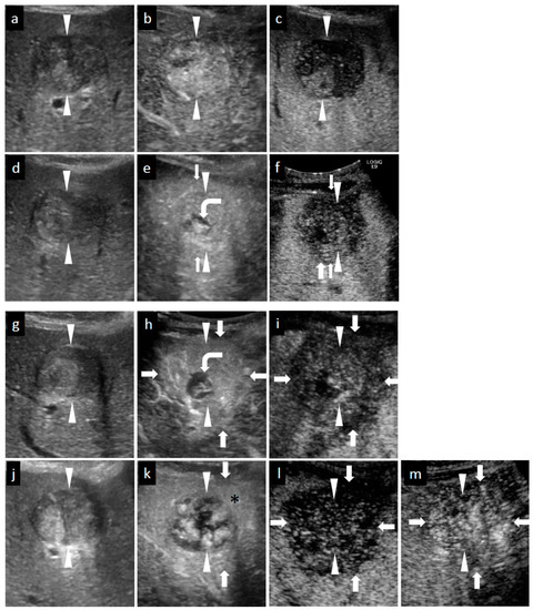 - Sugimoto, K.; Moriyasu, F.; Saito, K.; Taira, J.; Saguchi, T.; Yoshimura, N.; Oshiro, H.; Imai, Y.; Shiraishi, J. Comparison of Kuppfer-Phase Sonazoid-Enhanced Sonography and Hepatobiliary-Phase Gadoxetic Acid-Enhanced Magnetic Resonance Imaging of Hepatocellular Carcinoma and Correlation With Histologic Grading. J. Ultrasound Med. 2012, 31, 529–538. [Google Scholar] [CrossRef] [PubMed]