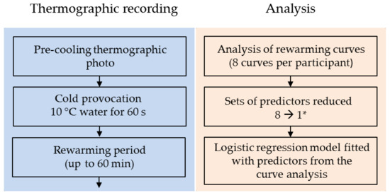 - Wilkinson, J.D.; Leggett, S.A.; Marjanovic, E.J.; Moore, T.L.; Anderson, M.E.; Britton, J.; Buch, M.H.; Del Galdo, F.; Denton, C.P.; Dinsdale, G.; et al. A Multicenter Study of the Validity and Reliability of Responses to Hand Cold Challenge as Measured by Laser Speckle Contrast Imaging and Thermography Outcome Measures for Systemic Sclerosis—Related Raynaud’s Phenomenon. Arthritis Rheumatol. 2018, 70, 903–911. [Google Scholar] [CrossRef]