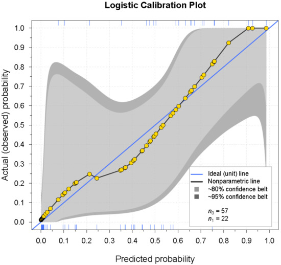 - Nattino, G.; Finazzi, S.; Bertolini, G. A New Calibration Test and a Reappraisal of the Calibration Belt for the Assessment of Prediction Models Based on Dichotomous Outcomes. Stat. Med. 2014, 33, 2390–2407. [Google Scholar] [CrossRef]